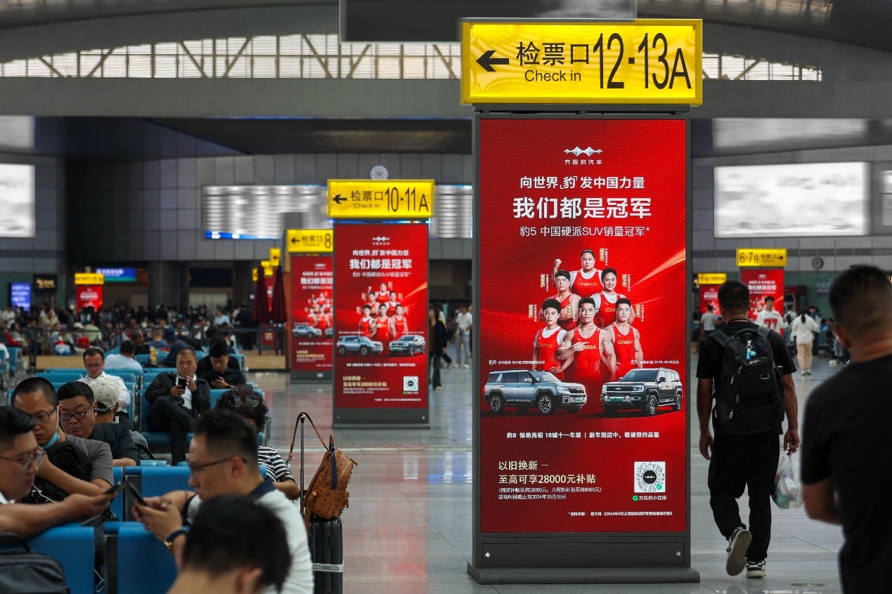 國(guó)家“十四五”鐵路發(fā)展規(guī)劃指出,到2025年,“八縱八橫”高速鐵路主通道基本建成,高鐵網(wǎng)絡(luò)將覆蓋97.2%的城區(qū)人口50萬(wàn)以上城市,構(gòu)筑“暢連東西,溝通南北”的交通主動(dòng)脈。2024年,全國(guó)鐵路年發(fā)送旅客43.12億人次,同比增長(zhǎng)11.9%(數(shù)據(jù)來(lái)源:國(guó)家鐵路局)。高鐵網(wǎng)絡(luò)的不斷擴(kuò)展,為高鐵戶外廣告提供了良好發(fā)展環(huán)境。高鐵站作為匯聚社會(huì)中堅(jiān)人群的核心場(chǎng)景,已成為與主流消費(fèi)群體建立深度情感共鳴的黃金傳播平臺(tái)。